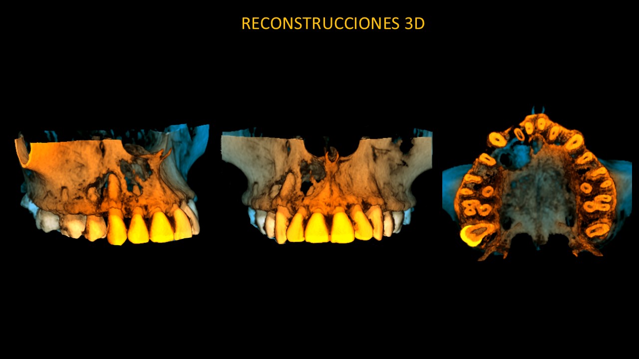 Las reconstrucciones tridimensionales (Figura 5) nos permiten ilustrar de manera didáctica la localización y extensión de esta lesión. Signos tomográficos compatibles con probable Quiste Radicular asociado a Dens Invaginatus.