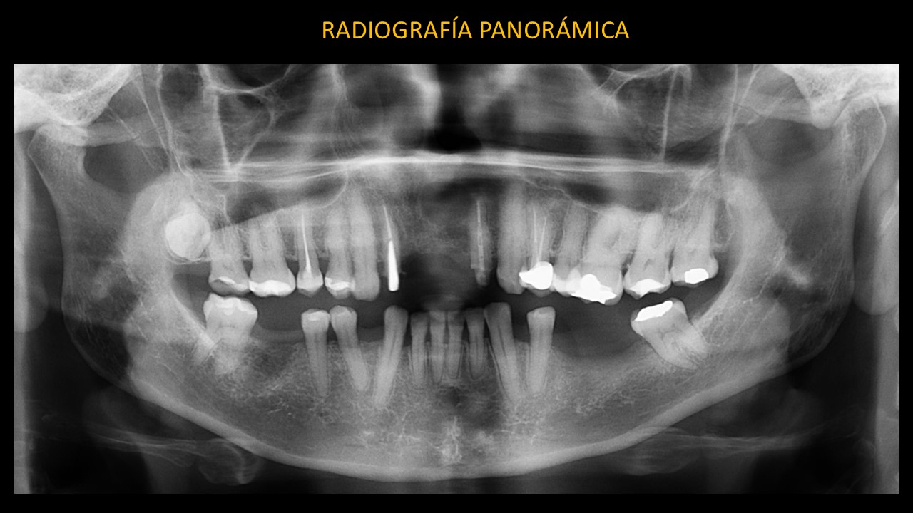 Paciente femenina de 63 años, asintomática, acude a la consulta para evaluación imagenológica debido un aumento de volumen en la zona anterior del maxilar superior.