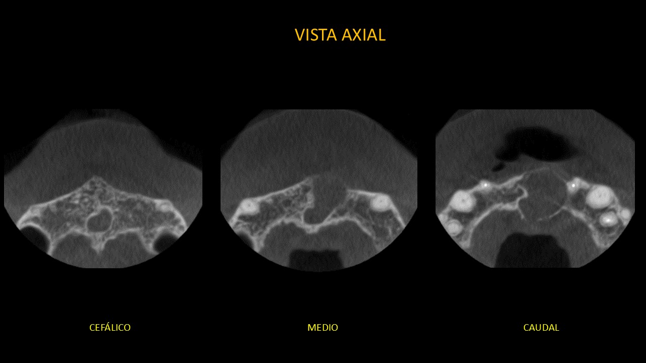 En la vista axial (Figura 2), de cefálico a caudal localizamos al conducto nasopalatino y al realizar un barrido notamos un aumento en su diámetro, lo cual produce la expansión y adelgazamiento de las tablas ósea vestibular y palatina.