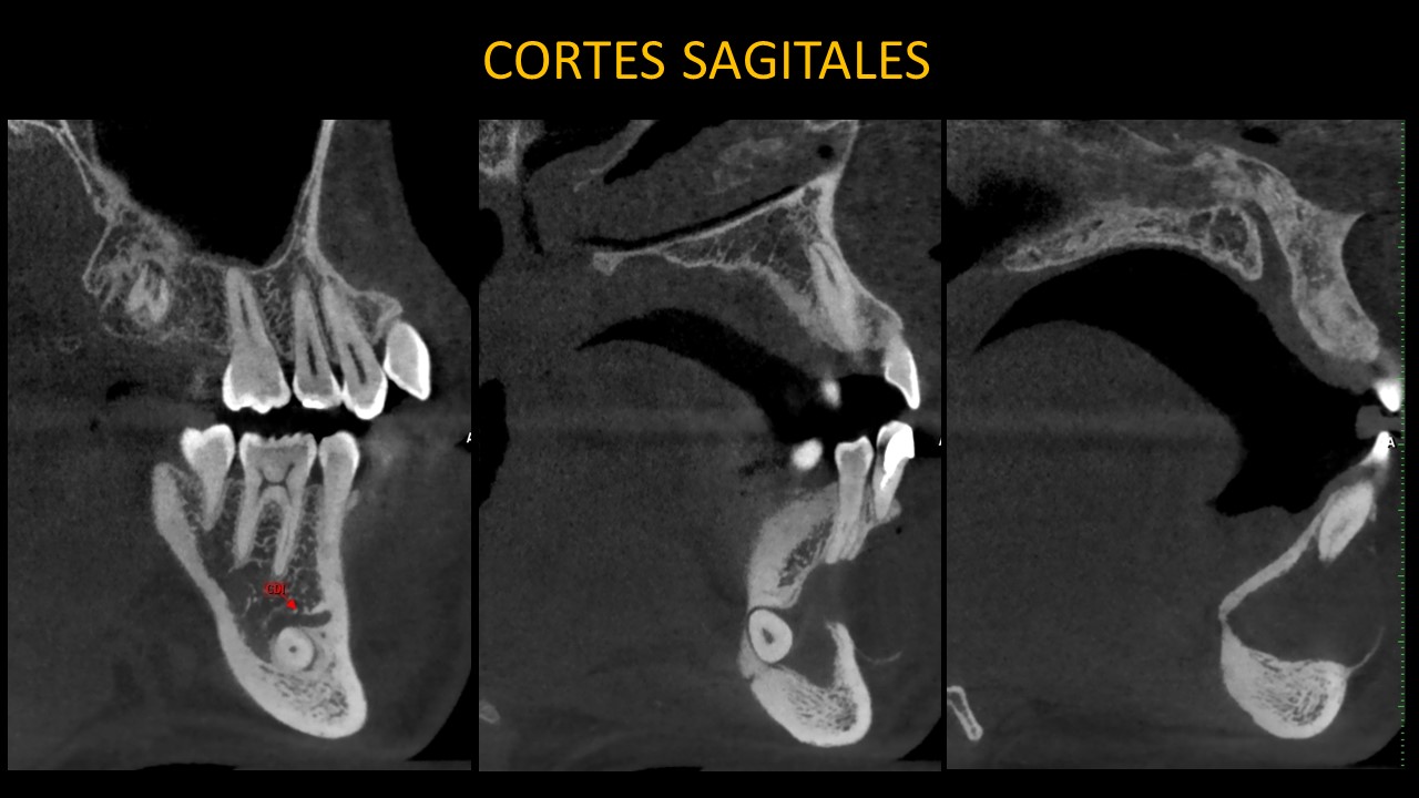 En los cortes sagitales(Figura 3) y coronales(Figura 4) se evidencia que no afecta las corticales del conducto dentario inferior y presenta forma festoneada en la región anterior